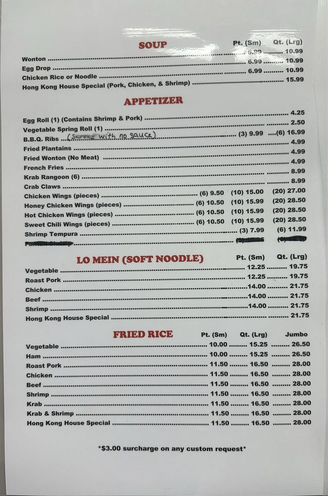 Welcome to Hong Kong House, a cherished gem in Miami Gardens offering authentic Chinese cuisine that has delighted customers since 1985. Known for their warm hospitality and consistent quality, this restaurant stands out as a local favorite. With a diverse menu that includes mouthwatering appetizers like Egg Rolls and Fried Dumplings to satisfying Lo Mein dishes, every bite transports you to the heart of Hong Kong.